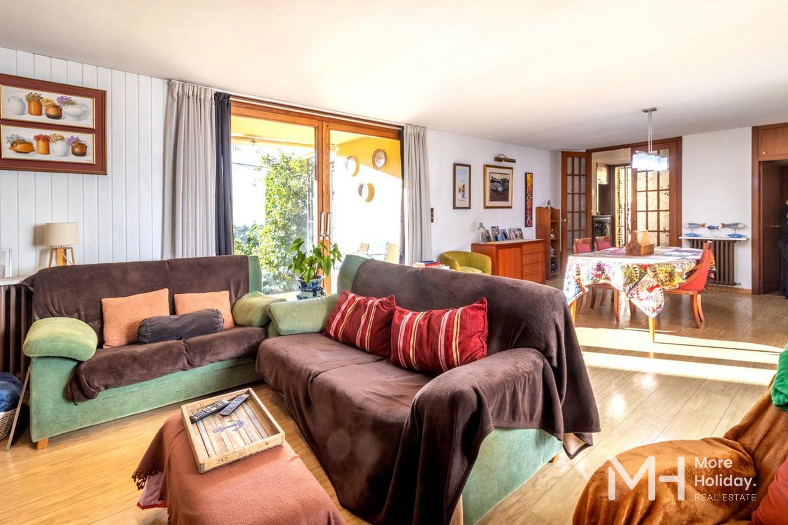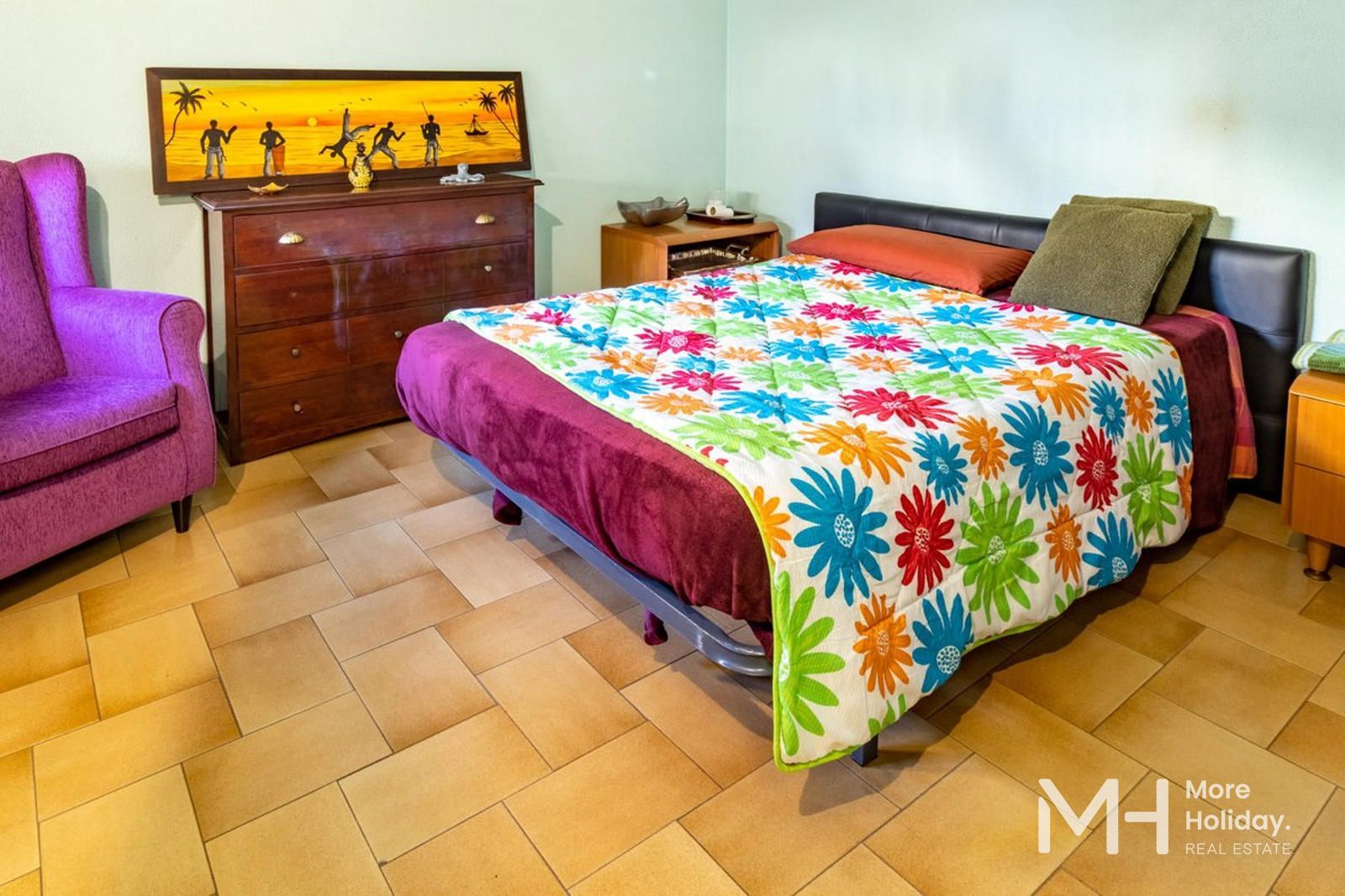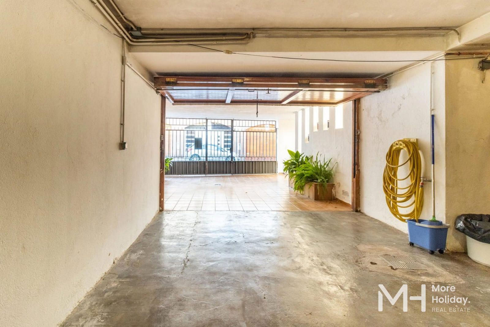 Retirada de la calle, la propiedad garantiza tranquilidad y privacidad, reforzadas por sus múltiples salidas a patios que amplifican la sensación de amplitud y bienestar. Su ubicación privilegiada permite un acceso inmediato a comercios y servicios, encontrándose a tan solo dos minutos de la playa.