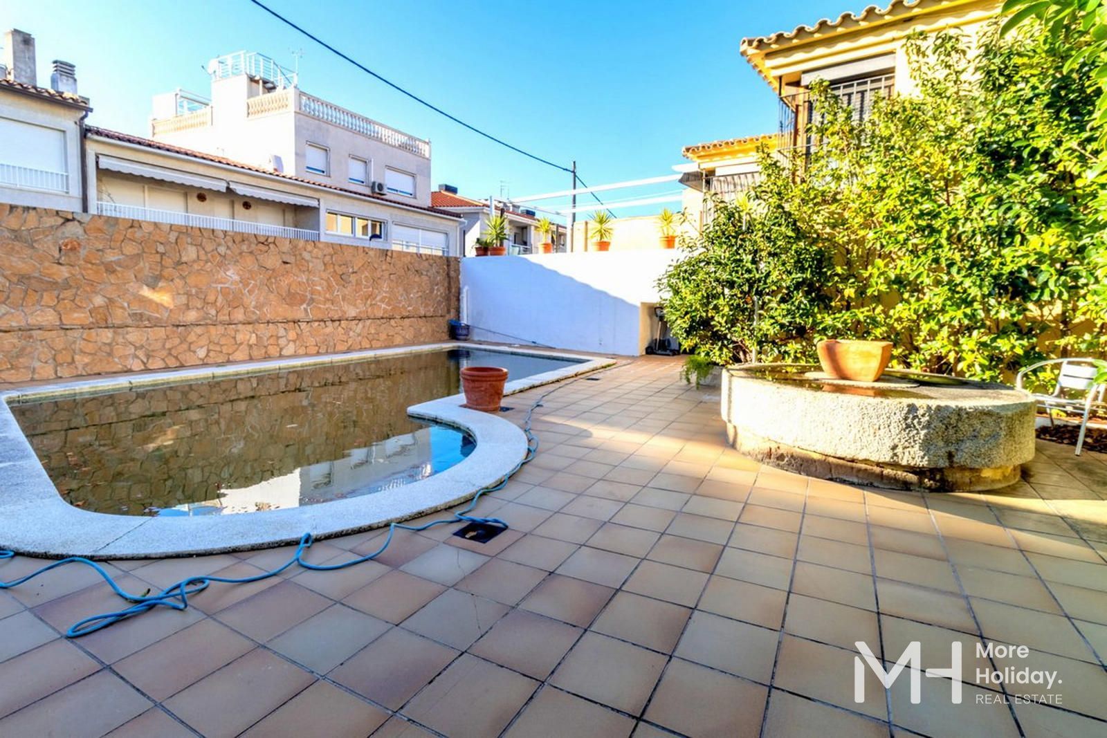 Los espacios exteriores han sido cuidadosamente diseñados para el disfrute y el relax. Una amplia terraza, un jardín privado bien cuidado y una piscina conforman un entorno ideal para disfrutar del clima mediterráneo, organizar reuniones sociales o simplemente relajarse en un ambiente de absoluta intimidad.
